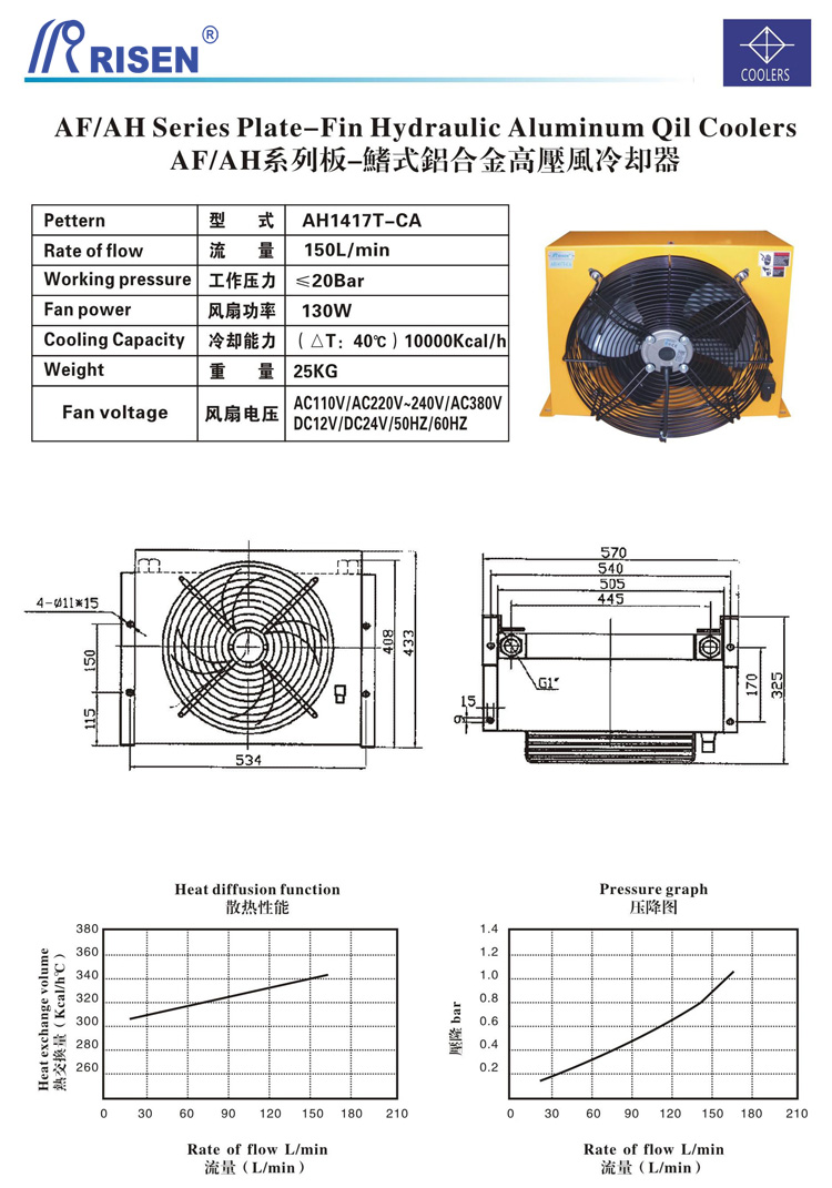 RISEN 日森 板式 風(fēng)冷卻器 風(fēng)冷 AH1417TT-CA 150L
