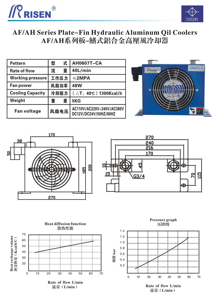 RISEN 日森 板式 風(fēng)冷卻器 風(fēng)冷 AH0607T-CA 40L