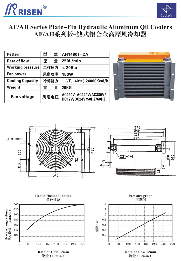 >> RISEN 日森 板式 風冷卻器 風冷 AH1490TT-CA 250L
