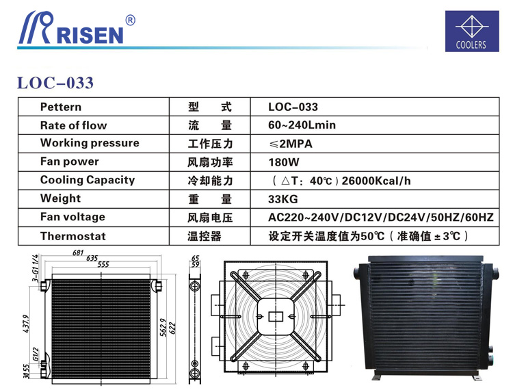 RISEN日森板式風冷卻器 兩側油口 帶電機 風冷 LOC2-033