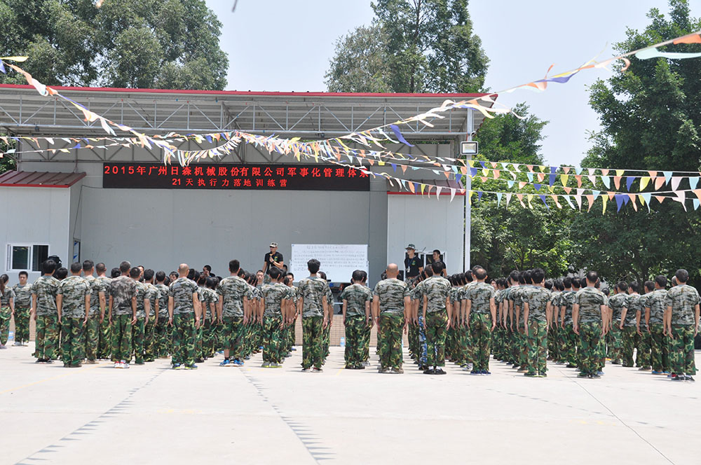 2015年8月7、8日,日森公司在番禺舉行了為期兩天一夜的軍事化管理體系暨21天執(zhí)行力落地訓(xùn)練。