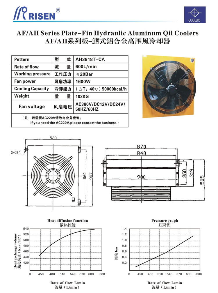 RISEN 日森 板式 風(fēng)冷卻器 風(fēng)冷 AH3818TT-CA 600L