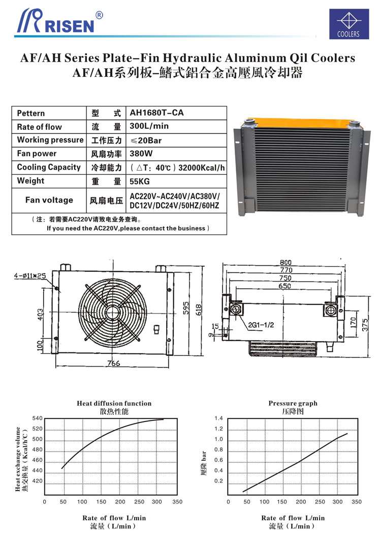 RISEN 日森 板式 風(fēng)冷卻器 風(fēng)冷 AH1680TT-CA 300L