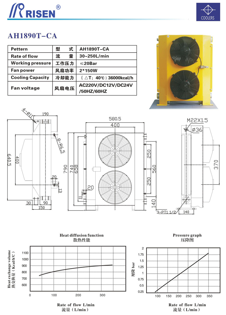 RISEN 日森 板式 風冷卻器 雙風扇 風冷 AH1890TT-CA